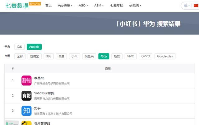 小编通过七麦数据的下架监控显示小红书APP在华为手机、魅族手机均被下架。