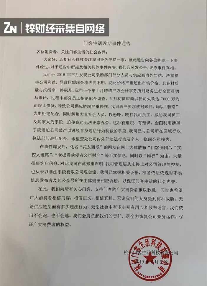 门客生活对近期业务停摆一事的说明