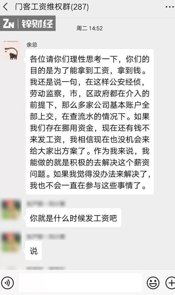 锌财经采访的多位门客员工了解到,从去年9月份开始,门客的工资就已经开始延迟发放,且从3月份开始,员工社保始终未到账欠费,工资从四月份开始拖欠。6月,部分员工以工资打欠条的方式“被离职”,CEO余杰曾公开承认,目前公司确实处在一个“非常困难的阶段”。
