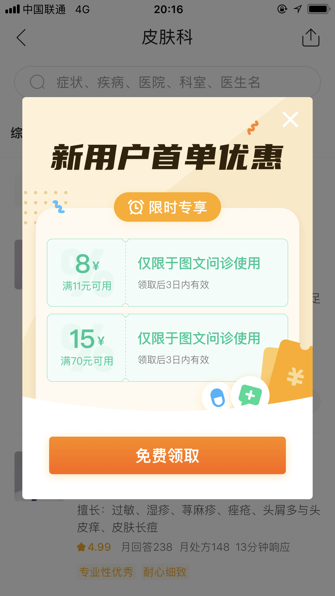 在丁香医生注册了解了丁香医生的基础功能并且建立信任感之后,有看病需求的用户这时就会想或许可以在这个平台试试看,但是也担心像其他网上平台一样,医生回答字数少,看了相当于没看,丁香医生提供的办法是,开通一元义诊,开启用户就诊初体验,以及打卡得丁香豆兑换优惠券的形式降低用户看病成本,这样是对用户留存很有帮助。